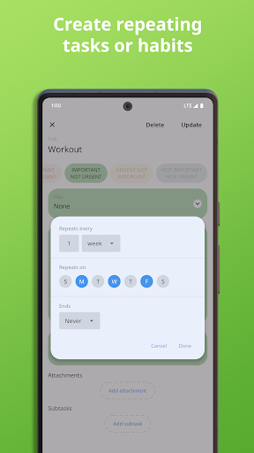 Looking for a powerful tool to help you maintain regular tasks and habits? This highly customizable option allows you to effortlessly schedule your tasks to repeat at intervals that work for you, ensuring that you stay on top of your routine with ease. Set it and forget it - 4.Do will remind you when it's time to tackle your next task.