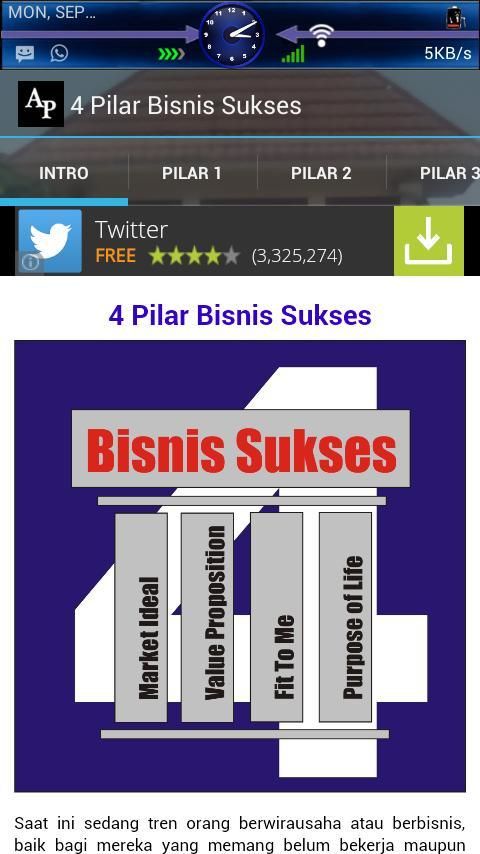4 Pilar Bisnis Sukses merupakan aplikasi bisnis gratis yang menjelaskan 4 pilar untuk membangun bisnis yang sukses. Saat ini sedang tren berwirausaha alias berbisnis baik yang sedang bekerja, mau pensiun ataupun yang sejak awal ingin langsung berbisnis saja. Banyak tawaran Bisnis oportunity, franchise, pelatihan dan workshop bisnis yang semuanya menawarkan kesuksesan. Sebelum jauh kesana mari pelajari 4 Pilar Bisnis Sukses ini dengan gratisss.