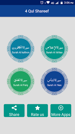 Four/4 Qul of holy Quran is a beautiful Islamic application for Muslims especially it is the gift for the holy month of Ramadan. Muslims from all over the world wants to memorize and feel proud after learned these 4 Qul by heart. Basically these four/4 Qul are the four chapters of Quran. These 4 Qul are among the last 10 surahs of Holy Quran. These Surahs of Quran are Surah Al- Kafiroon, Al- Ikhlas, surah Al-Falaq and surah An-Nas. This application lets all Muslims around the word to recite, narrate, and listen the verses of 4/Quls and the translation of these chapters too.