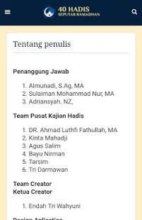 With the presence of this application, hopefully benefit to the entire public at large, particularly for activists traditions in seeking arguments of shari'ah. In the end, I would like to thank all, especially the FUSHPI and PKH who have supported and helped for the presence of Applications "40 Hadith Regarding Ramadan". May God give you an abundance of grace and of His Mercy to us all.