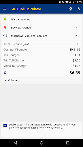 * Please note that this application is not endorsed by 407 ETR, and is intended for toll estimates only.