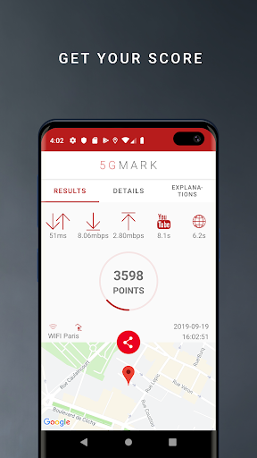 5GMARK is a tool offering a comprehensive and reliable benchmark of the quality of service for smartphones. It allows you to compare smartphones, networks or places on every technologies 2G (Edge, Gprs), 3G (Umts, Hsdpa, H , Dual-carrier), 4G (LTE), 5G and Wifi.