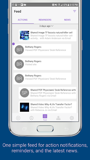 Feed: Keep track of everything you’ve shared and see what your contacts have viewed with notifications. You can even swipe notifications to mark them as a Reminder. News also brings all of the latest announcements and social posts from corporate straight to you--in one convenient place!