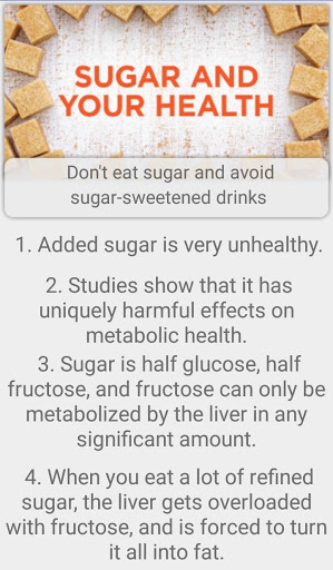 Don't eat sugar and avoid sugar-sweetened drinks.