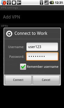 This app lets you store your VPN password and provides a short cut to the built-in Android VPN Settings. This will save you time when connecting.