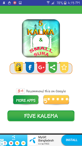 4 kalima or 6 kalma is islamic, arabic and english app for all muslim kids, child's and adults. we wish everybody love this islamic app. any one can find out this app please search by the 5 Kalima islamic app, or five kalima arabic app.