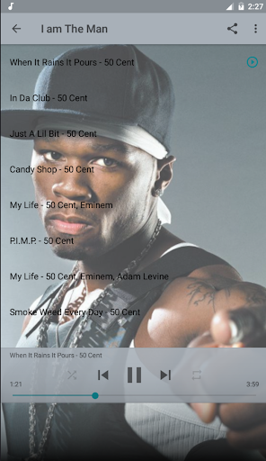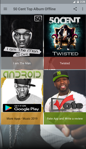 50 Cent Top Album Offline is a completely FREE online music application. The purpose of this 50 Cent Top Album Offline application is to provide users with the best features and the easiest to use. Our application aggregates the most popular songs online, ... so you can search for the songs you like to listen to.