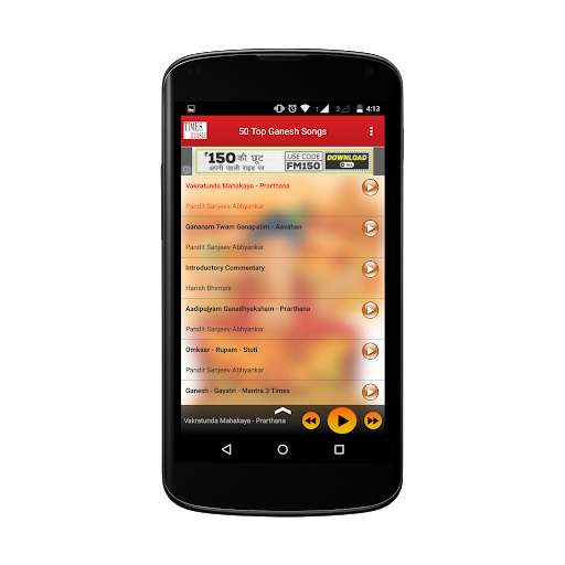 3. Featuring Top 50 Devotional Songs of Ganesh. Once Streamed Song can be played in OFFLINE Mode also.