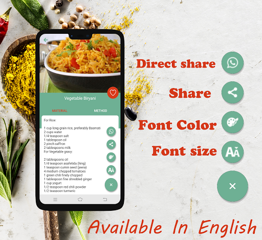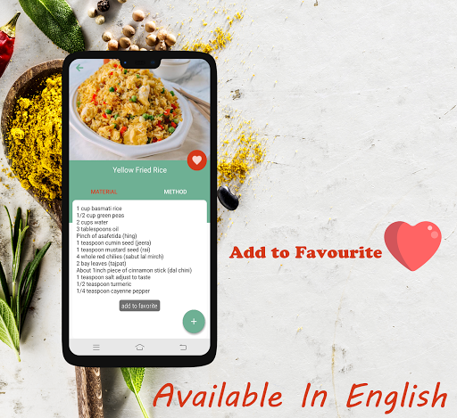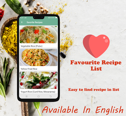 and more. Fish fry during our meals is one of the best combination. Rice recipes free cookbook includes lots of delicious rice dishes. salads etc during rice dishes is a best combination. Variety of chicken recipes are also available. During marriages especially in south India people prefer rice recipes for their function. Fried rice makes for an easy meal or tasty accompaniment to a whole range of dishes. Here you'll find plenty of fried rice recipes. Now cooking is made very easily for you. This free app provides you step by step guide for preparing recipes. The main features of this app includes