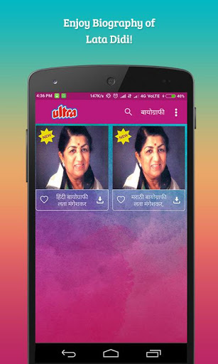 8. Biography – Biography of Lata Mangeshkar in both Hindi & Marathi Language.