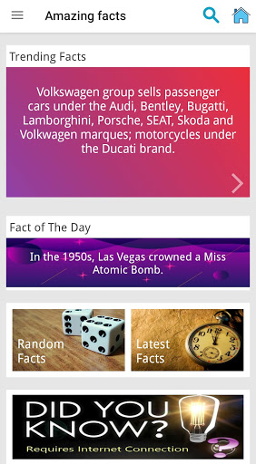 The app Contains 50000 Amazing and Awesome Facts that you have not heard before.