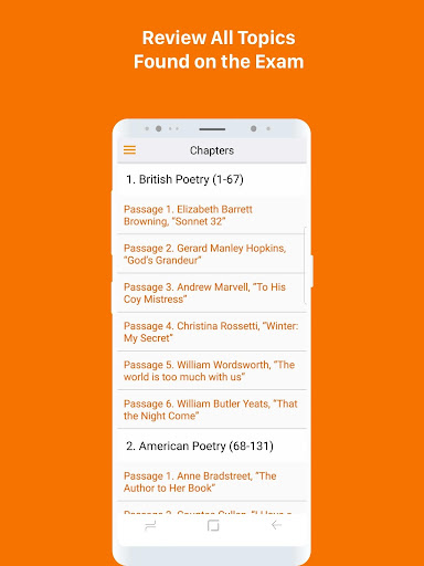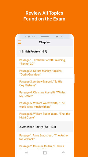 This free application includes all questions in Chapter 1 - British Poetry (1-67). The remaining 433 questions are available through an in-app purchase of $15.99.
