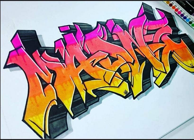 Draw the graffiti design that you like the most and express your creativity step by step.