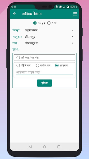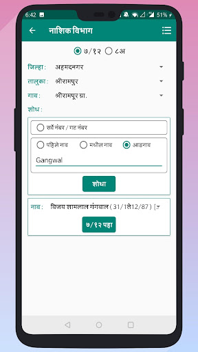 • Find your 7/12 Utara Maharashtra with help of survey number / GAT number, first name, middle name or last name.