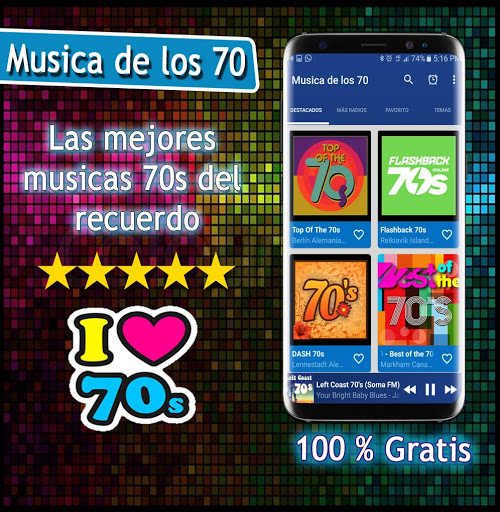 Musica de los 70 is a free application of the main music radios of the 60 70 80 and 90 in Spanish, music of the 80s, 70 Music Radio, music of the 60s and 70s, disco music delos 80 and 90, among other genres musical of the moment. The list of radios included is varied.