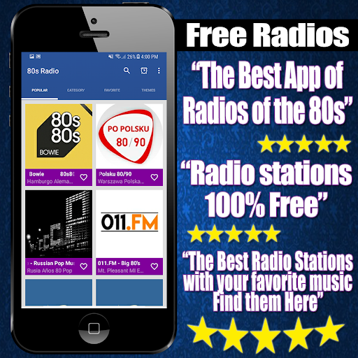 With this mobile app can listen to Online 80s Music Radio free Hits from your phone Easily: