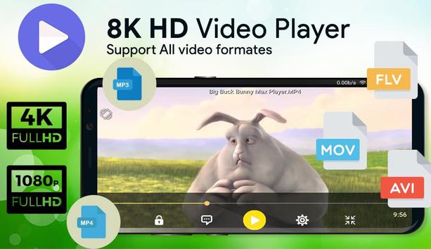 - 8K HD Video Player 2018 is supports all multi media video formats including AVI rmvb , MP4 , WMV , rmvb , MKV , 3GP , M4V , MOV , TS , MPG , FLV ,etc.