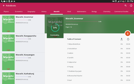 The subjects include Mathematics (Maths), Science (Physics, Chemistry, Biology), History, Political Science, Geography and Languages (English, Marathi, Hindi, French, Sanskrit). The Science Practicals (Physics Practicals, Biology Practicals, Chemistry Practicals) are packaged to make it as one of the best educational apps for school students.