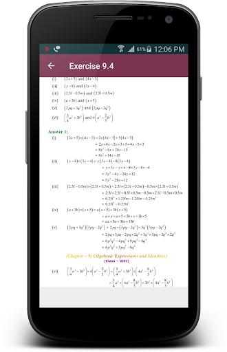 8th Maths CBSE Solution App is completely offline app and easy to use in Android Mobile. Student can easyli check answer on this app. Its completely free app.