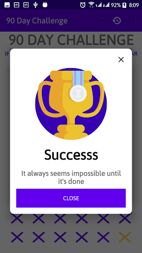90 Days Challenge app, keeps track of all your challenges all the while giving you motivation not to give up and achieve success.