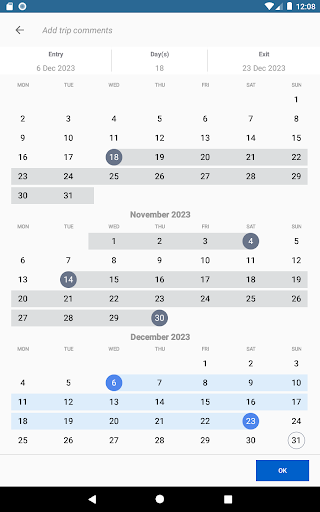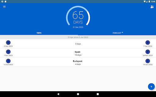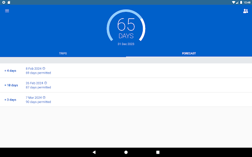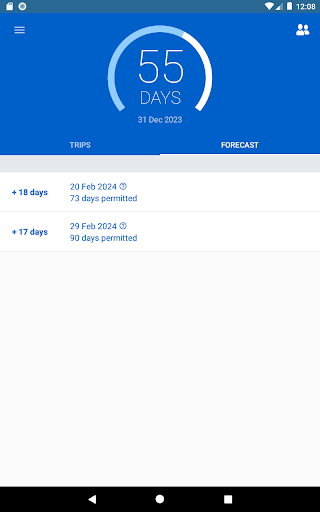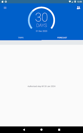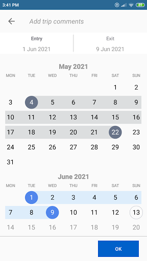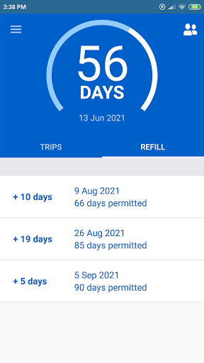 ■ observe the countdown of allowed days for your ongoing trip (if the exit date is left empty),