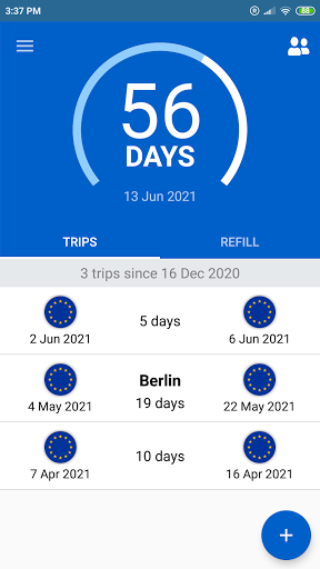 IMPORTANT: Holders of a 90-day Schengen multivisa must control that the visa is still valid during the trip. There is no logic to track the validity of a visa in the app yet.
