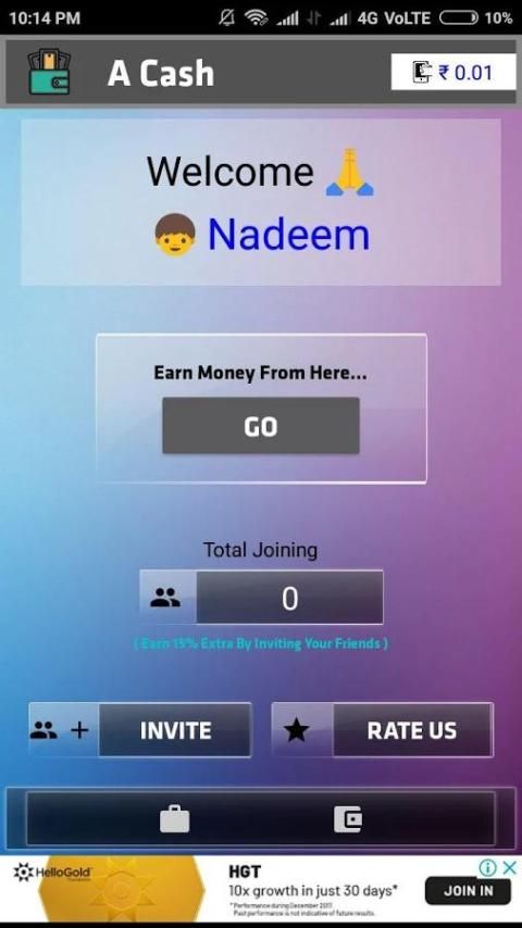 A Cash is earning application. Using A Cash you can earn up to 100 rs daily.