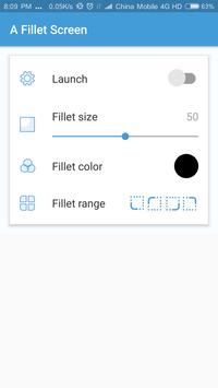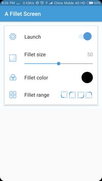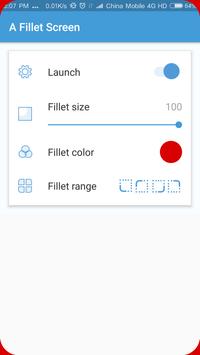 1.You can use "A Rounded Corner Screen" to adjust the size of the fillet.