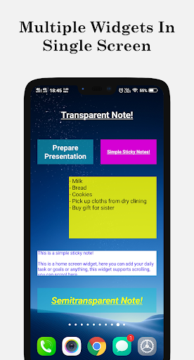 A Simple Sticky Notes Widget is a colorful, resizable, scrollable home screen widget.