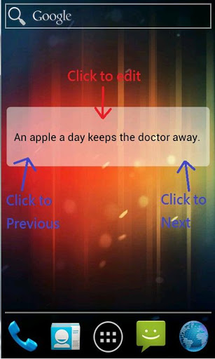 Desktop text widget, enter the sentences, phrases, note, motto that you love or the objectives/goals you want. It can show the previous/next text by clicking left/right region of widget easily.