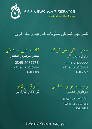 AAJ NEWS Client for uploading Video and Images. or use http://wap.aaj.tv/