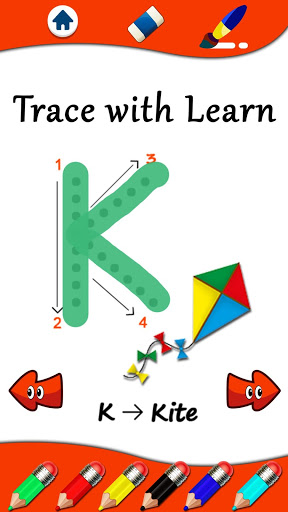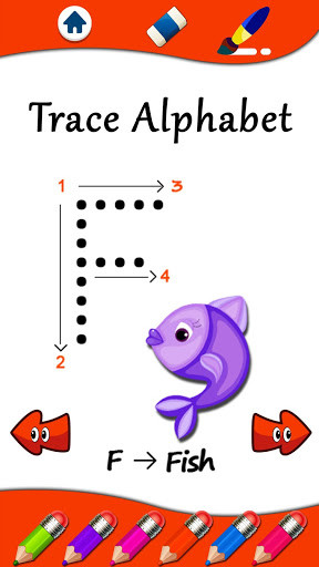 This is free alphabet tracing app is an educational and entertaining game that helps your kids recognize alphabets, drawing and painting sound and learns to write simply by following the dots.