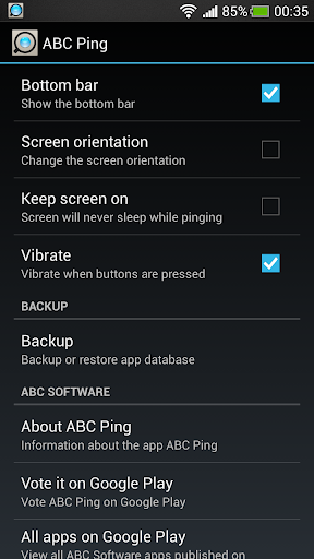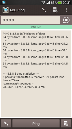 ABC Ping is a computer network administration utility used to test the reachability of a host on an Internet Protocol (IP) network and to measure the round-trip time for messages sent from the originating host to a destination computer. Application supports both 3G and Wi-Fi networks.