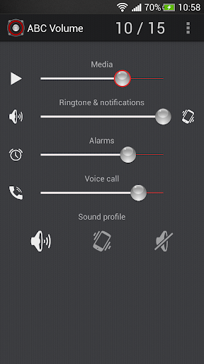 Application for quick setup volume levels ringtone, notifications, alarms, etc.
