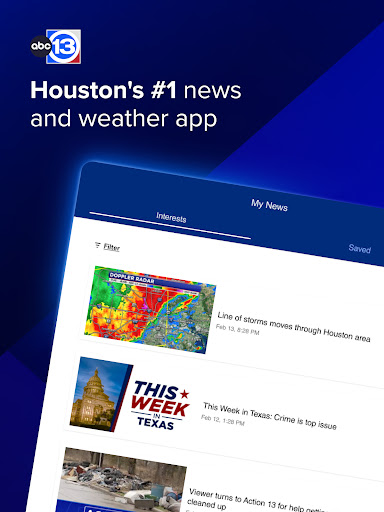 The ABC13 app provides the latest breaking news and weather with alerts customized for you! Get more live video than ever before with the 24/7 live stream.