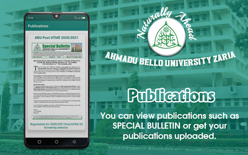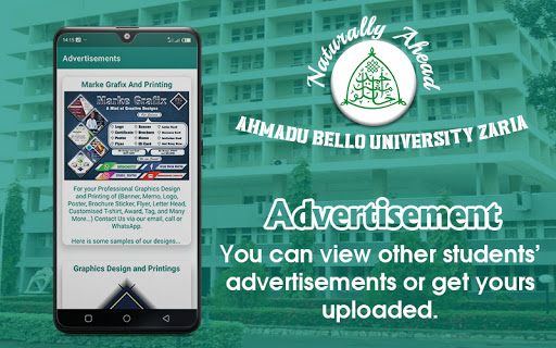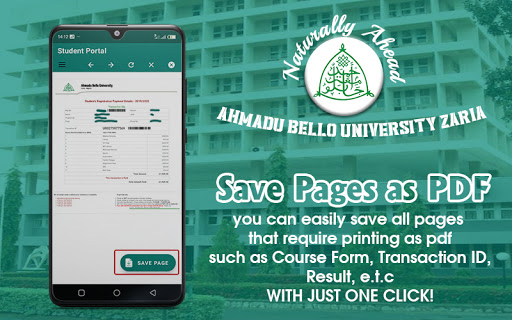 This application was developed in order to help students, staff and even applicants of Ahmadu Bello University Zaria to perform all online activities that are performed in the school's website/portal easily. These include; buying online forms, course registration, result checking, e.t.c.