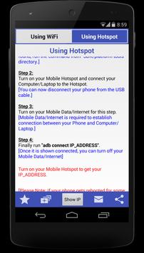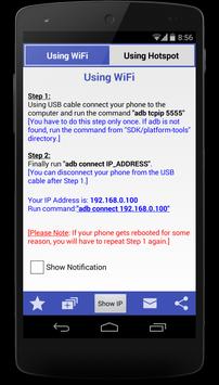 This app helps you develop, test and run Android apps wirelessly from Android Studio/Eclipse without rooting your phone! Now no need to hassle with the wires or over charge your phone :)