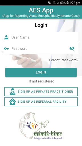 This app will be used by private practitioners to notify cases of Acute Encephalitis Syndrome (AES) in seven districts of Eastern UP. The app will also be used by Encephalitis Treatment Centres (ETC) to notify and report outcome of treatment of AES cases.