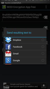 App can send encrypted or decrypted message via e-mail, SMS, IMS, Facebook and so on, save it in notes or open this text in any other app that can receive text messages.
