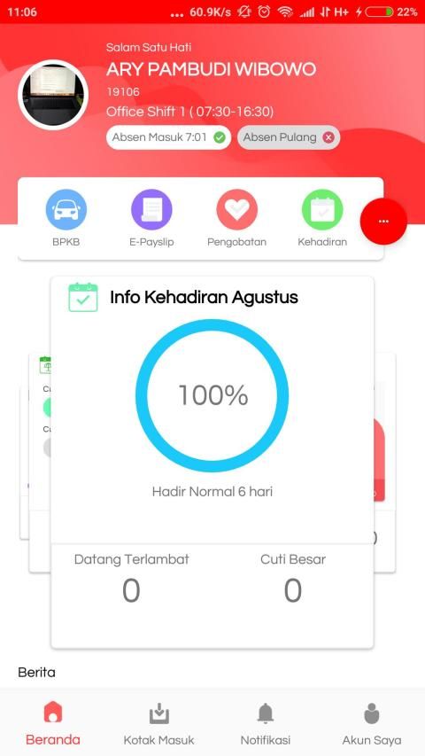 Masih sering banyak bug, mobile attendance sering error, self health check error, dll
