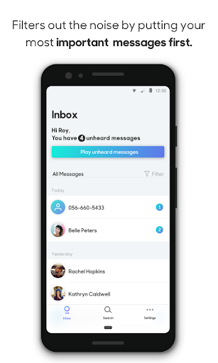Messages are transcribed, stored, and sorted in a simple and easy-to-use interface.