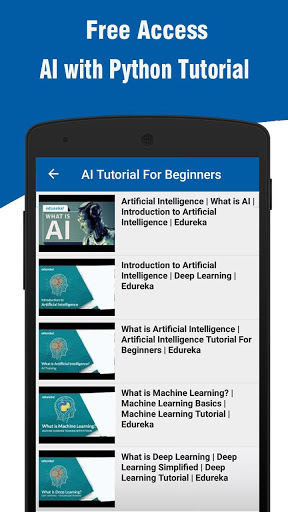 Artificial intelligence is the intelligence demonstrated by machines, in contrast to the intelligence displayed by humans. This app covers the basic concepts of various fields of artificial intelligence like Artificial Neural Networks, Natural Language Processing, Machine Learning, Deep Learning, Genetic algorithms etc., and its implementation in Python.