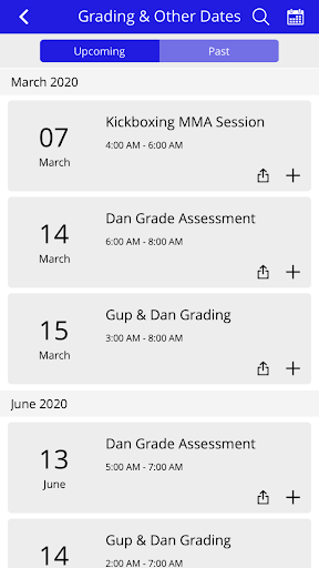 See future dates for gradings, Dan Grade assessments and special classes.