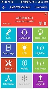 Over The Air Control App for AKE ECC handsfree systems in hearing protection.