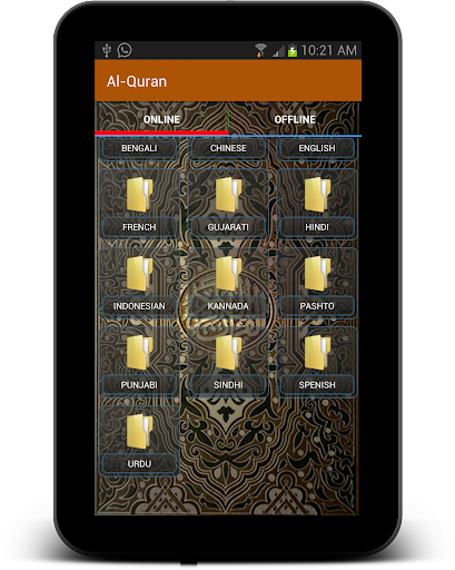 Now listen recitation of complete Holy Qur'an (114 Surahs) in your own language. This app contains recitation of Holy Quran in Arabic language and translation in many different languages like Urdu, Hindi, Indonesian, English etc. Koran in many other languages like pashto, sindhi, punjabi, french, spanish, german, tamil is also available.