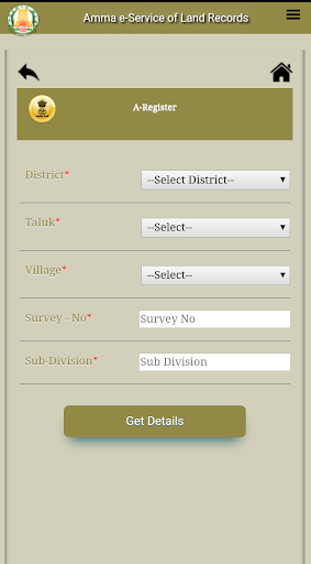 The citizens by entering the name of District, Taluk, Village, Survey No. and Sub-division No. details can view the entire 12 columns available in the ‘A’ Register viz., Survey No., Land type, Soil, Sort, Rate per hectare, irrigation source extent of the Sub-division, assessment and Patta No. and name of the pattadhar and remarks. Citizens can instantly view and verify all the above fields.