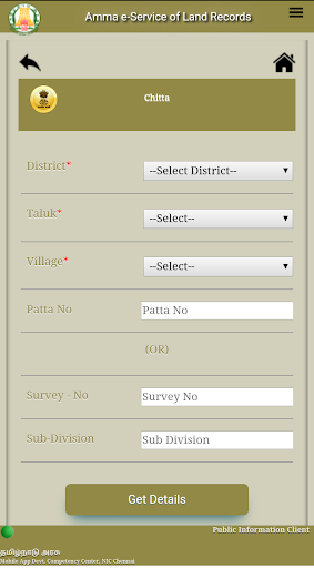 The citizens by entering the name of District, Taluk, Village, Survey No. and Sub-division No. details, can view the type of the land, whether it is ‘Private’ or Poramboke’ land. By using this tab, the individual can know the ‘type of land’, which is just a click away, unlike previously where the individuals have to walk to either Taluk office or to the Village Administrative officer.