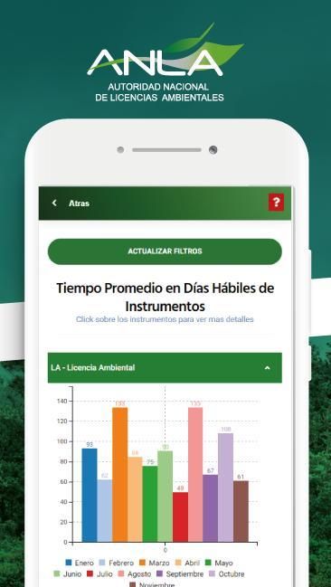 La Autoridad Nacional Ambiental de Colombia, ANLA, genera una aplicación que permite la consulta estadística y por proyecto del proceso de licenciamiento ambiental de su competencia, realizar denuncias ambientales por parte de los ciudadanos y recibir sugerencias dentro del proceso de mejora continua de la entidad.