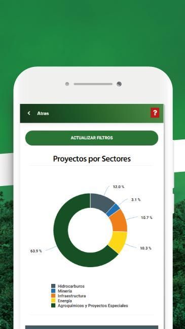 The application has a user-friendly interface and allows easy and fast navigation thanks to the visible buttons to access the information. The statistics produced by the query can be viewed annually, by projects, sector, type of instrument, type of request and PINES Projects, among others.