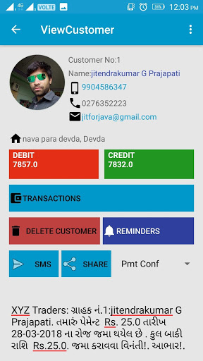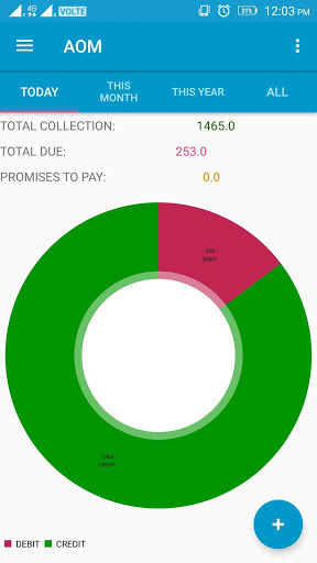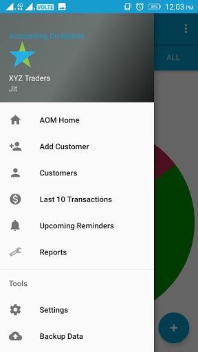 AOM allows to manage your debits and credits, add reminders, get reports in one handy app. It also gives functionality to manage print bills gives statements of your customers.